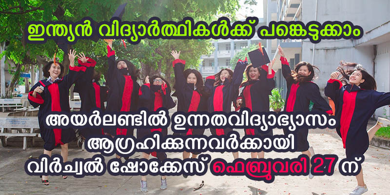 അയർലണ്ടിൽ ഉന്നതവിദ്യാഭ്യാസം ആഗ്രഹിക്കുന്ന ഇന്ത്യൻ വിദ്യാർത്ഥികൾക്ക് സഹായകമായി ഒരു വിർച്വൽ ഷോക്കേസ് സംഘടിപ്പിച്ച് ഐറിഷ് വിദ്യാഭ്യാസ വകുപ്പ്. ഫെബ്രുവരി 27 ന് 13:00 മുതൽ 18:00 IST വരെയാണ് ഈ വിർച്വൽ മേള. ഇന്ത്യയിൽ നിന്നുള്ള വിദ്യാർത്ഥികൾക്ക് മുൻകൂർ രജിസ്റ്റർ ചെയ്ത് വിദ്യാഭ്യാസ സ്ഥാപനങ്ങളുമായി നേരിട്ട് സംസാരിക്കുകയും സംശയങ്ങൾ തീർക്കുകയും ചെയ്യാം. അയർലണ്ടിലെ പ്രശസ്തമായ 20 ൽ പരം ഉന്നതവിദ്യാഭ്യാസ സ്ഥാപനങ്ങൾ പങ്കെടുക്കുന്ന ഈ പ്രോഗ്രാമിൽ ന്യൂഡൽഹിയിൽ നിന്നുള്ള ഐറിഷ് വിസ ഓഫീസും ഉൾപ്പെടുന്നു. ആയിരത്തിൽപരം വിദ്യാർത്ഥികളെയാണ് അന്നേ ദിവസം പ്രതീക്ഷിക്കുന്നത്.