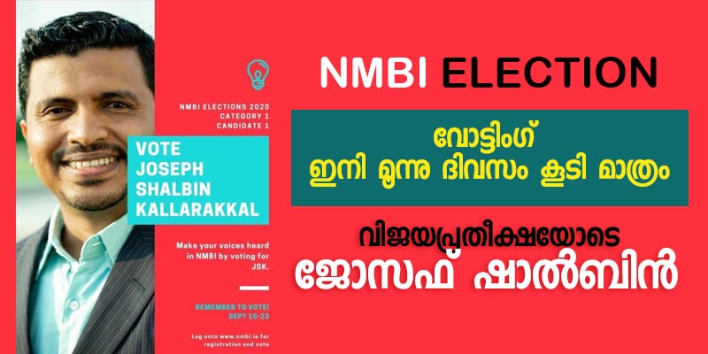 അയർലൻഡ് നഴ്സിംഗ് ആൻഡ് മിഡ് വൈഫറി ബോർഡിലേക്ക് സെപ്റ്റംബർ 15 ന് ആരംഭിച്ച വോട്ടിംഗ് 23 ആം തിയതി ബുധനാഴ്ച്ച ഉച്ചയ്ക്ക് 12 മണിക്ക് അവസാനിക്കുമ്പോൾ തികഞ്ഞ ആത്മവിശ്വാസത്തിൽ ഐറിഷ് മലയാളികൾക്ക് പ്രിയങ്കരനായ ജോസഫ് ഷെൽബിൻ കല്ലറക്കൽ. ഇക്കുറി മത്സര രംഗത്തുള്ള രണ്ട് മലയാളികളും ശക്തമായ പ്രചാരണം തുടരുകയാണ്. മൂന്നു ക്യാറ്റഗറികളിലായി മത്സരരംഗത്തുള്ള 9 പേരിൽ ഒരേയൊരു പുരുഷ മത്സരാർഥിയാണ് ജോസഫ് ഷാൽബിൻ.