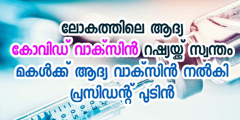 ലോകത്തിലെ ആദ്യ കോവിഡ് വാക്സിൻ റഷ്യ പുറത്തിറക്കി. റഷ്യൻ പ്രസിഡന്റ് പുട്ടിന്റെ മകൾ ആദ്യ വാക്സിൻ സ്വീകരിച്ചു എന്ന് വിവിധ വാർത്താ മാധ്യമങ്ങൾ റിപ്പോർട്ട് ചെയ്യുന്നു. “ഇത് വളരെ ഫലപ്രദമായി പ്രവർത്തിക്കുന്നുവെന്നും ശക്തമായ പ്രതിരോധശേഷി ഉണ്ടാക്കുന്നുവെന്നും എനിക്കറിയാം, അത് ആവശ്യമായ എല്ലാ പരിശോധനകളും കടന്നുപോയി,” പുടിൻ പറഞ്ഞു.